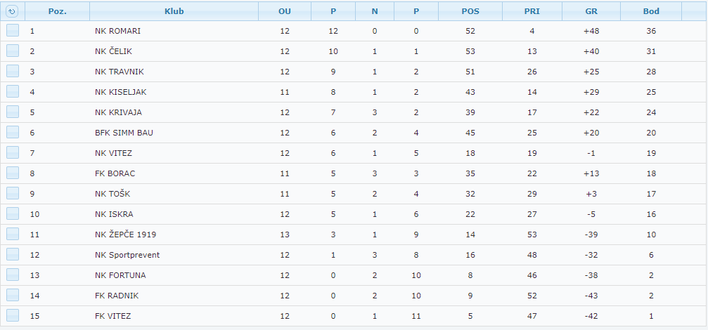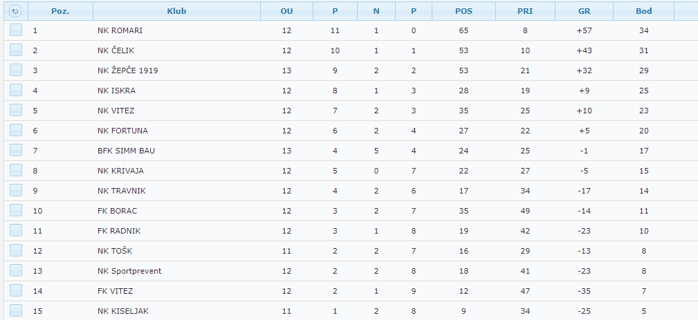 Nakon odigranih 13.kola, Čelikovi juniori imaju 31 bod i nalaze se na drugom mjestu na tabeli.