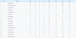 Tabela Druge lige FBiH – grupa Centar